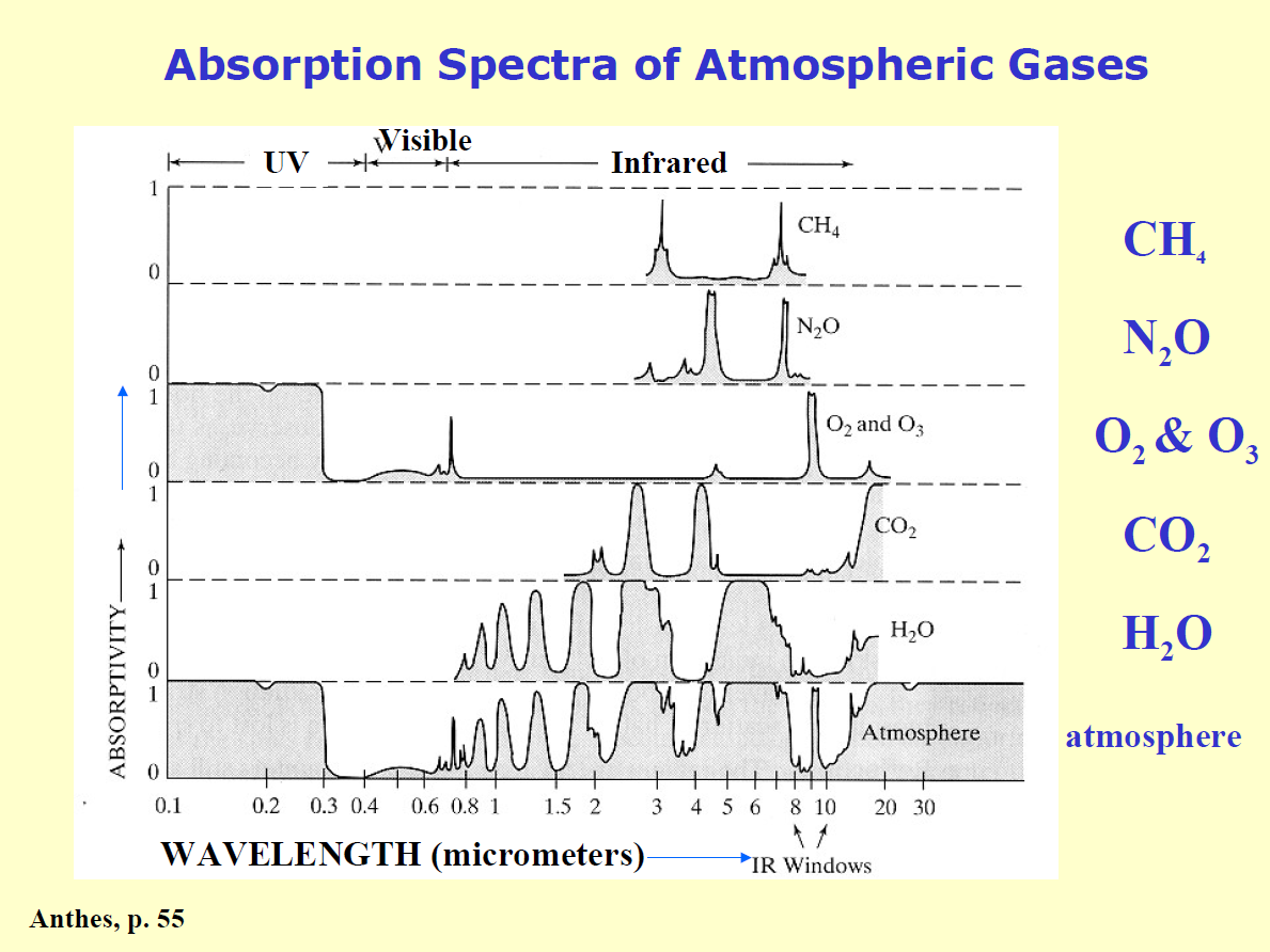 The chart shows the absorption of a number of gases, but not the overall opacity related to concentration.